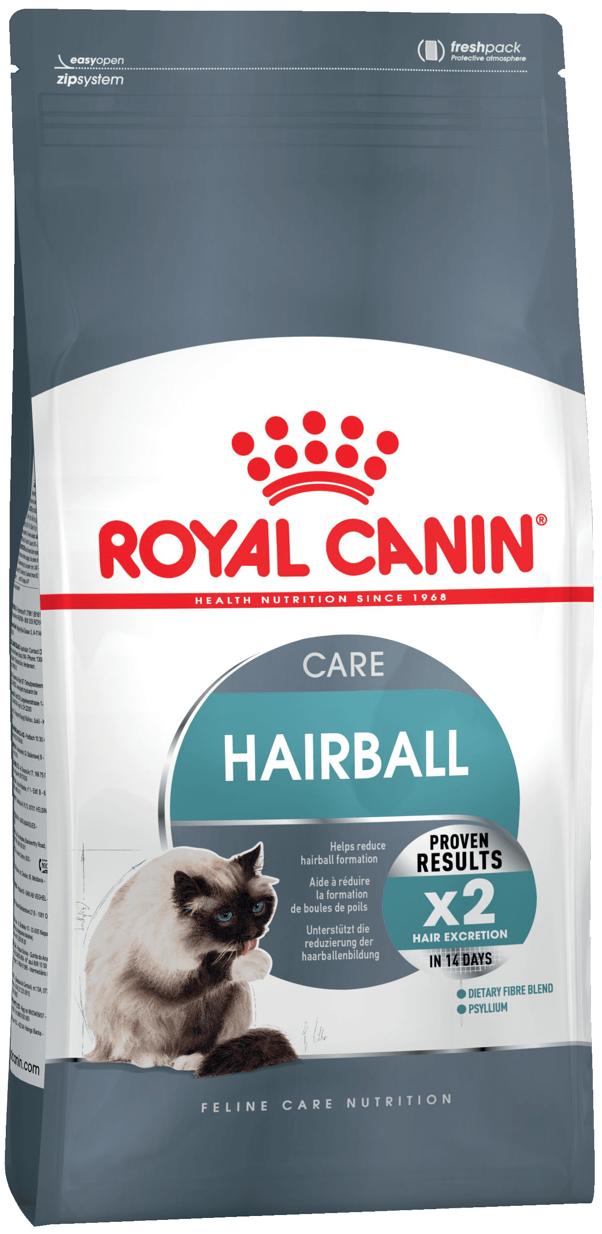 - Эксклюзивный комплекс HAIRBALL CARE, включающий комбинацию различных видов клетчатки, в том числе семя подорожника Psyllium (богатое растительной слизью) и нерастворимую клетчатку, способствует стимуляции кишечного транзита.